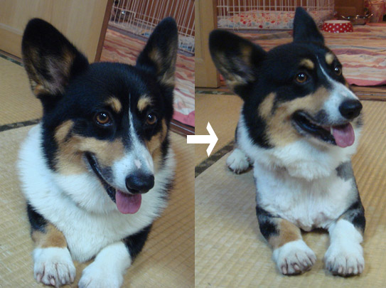 いつもの簡易デスクという専用トリミング台にて作業。 最初バリカンにビビるが、慣れたら大人しくなった。 元々そういうときには暴れないので楽な子なのだ。 バリカンも使いやすいし。 これなら楽勝だ~♪って余裕こいてたら大変でした・・・ みっちり生えてるコギ毛。 さすがダブルコート。 まずは6ミリで大雑把に刈り、3ミリで仕上げ。 楽しいくらいザックザック刈れる。 3ミリの仕上げにちと手間取ったが、なんとか刈れた。 正面から見た図。 首輪抜けを防ぐため、首輪から前は刈らず。 斜め後ろから見た図。 ≧∇≦ブハハハハハ 頭デカッ! ビフォーアフター。 襟巻きなくなって足が長くなったヾ(*ΦωΦ)ノ ヒャッホゥ 真上からから見たらスゴク変なんやけど、撮ってないΣ(´□`;)ハゥ なんか、とらであって、とらでない生き物になったようだ・・・ 見たら笑ってしまう。 あひゃひゃひゃひゃ(≧∀≦*)