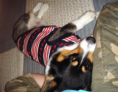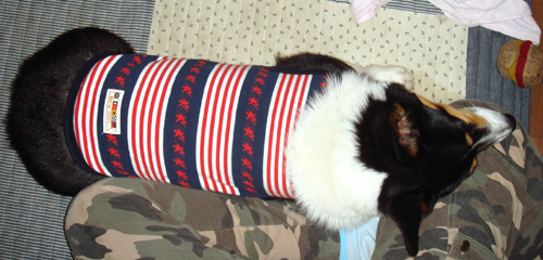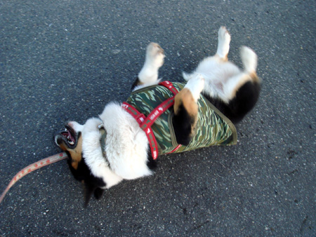 夕方まだ道が濡れてるので泥除け迷彩メッシュTシャツを着用。 お腹部分が撥水生地で伸びないので、ピチピチかと思ってたら。 そうでもなかった。 ほどよくフィット( ̄▽ ̄)b グッ! 最近、服を着る=散歩orおでかけ だと認識したらしく、着せやすくなった。 以前は暴れて大変やったのにねえ。 はよ散歩行こうやー PR